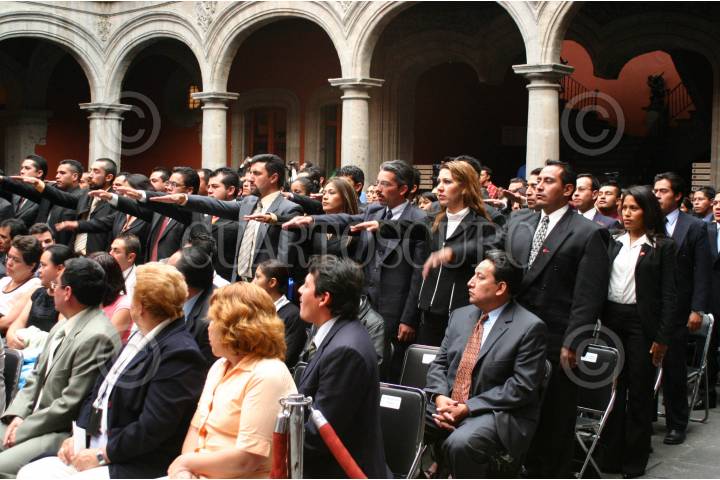 MÈXICO,D.F.23MARZO2006.- Entrega de certificados en la ceremonia de graduaciòn de los Agentes de la Policìa Judicial del Distrito Federal sèptima generaciòn de el Instituto de Formaciòn Profesional, realizàndose en el Museo de la Ciudad de Mèxico. Foto: M. Tulia Pèrez Bocanegra/CUARTOSCURO.COM