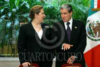 MEXICO, D.F., 23MARZO2006.- Ana Teresa Aranada, Seceretaría de Desarrollo Social y Julio Frenk Mora, Secretario de Salud, durante la primera sesión del Consejo Nacional de Protección Social, en el salón Manuel Avila Camacho de los Pinos. FOTO: Moisès Pablo/CUARTOSCURO.COM