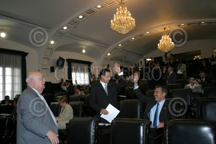 MEXICO, D.F., 23MARZO2006.- Los senadores priista Manuel Bartlett y Emilo Gamboa Patrón, durante la sesión ordinaria en el Senado de la República. FOTO: Nelly Salas/CUARTOSCURO.COM