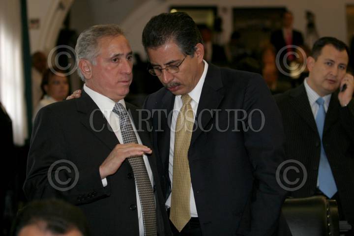 MEXICO, D.F., 23MARZO2006.- Los senadores priista Manuel Bartlett y Emilo Gamboa Patrón, durante la sesión ordinaria en el Senado de la República. FOTO: Nelly Salas/CUARTOSCURO.COM