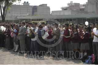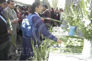 MÉXICO D.F. 24MARZO2006.- Estudiantes del CETIS 55, dejaron flores blancas en el altar que se improvisó en el patio central de dicha escuela, en señal de su pesar por la muerte de los compañeros en el accidente de la Carretera México-Pachuca. FOTO: Fernando García/CUARTOSCURO.COM