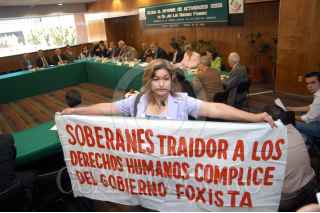 MEXICO D.F. 29 MARZO.2006- Diana Martinez, irrumpio durante la entrga de la Glosa del Informe del Obusman, José Luis Soberanes presidente de la Comisión de Nacional de Derechos Humanos. FOTO: Guillermo Perea / CUARTOSCURO.COM