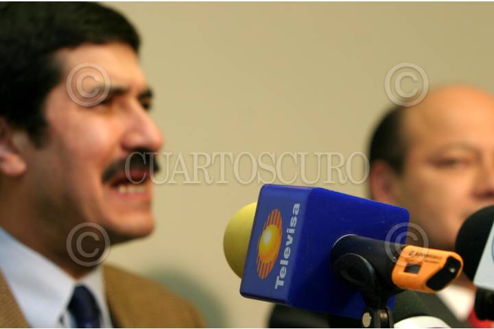 MEXICO, D.F., 06ABRIL2006.- Los senadores Javier Corral , Manuel Bartlet y Cesar Raúl Ojeda, ofrecieron una conferencia de prensa sobre la reciente aprobación de la Ley de Radio y Televisión o llamada Ley Televisa, en el Senado de la República. FOTO: Moisés Pablo/CUARTOSCURO.COM