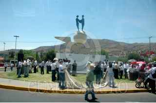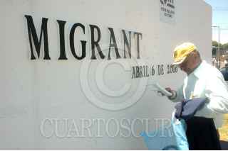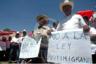 ZACATECAS, ZACATECAS 06ABRIL2006.- Andrés Bermúdez, alcalde del municipio de Jeréz, conocido como el Rey del Tomate estuvo presente en el mítin realizado frente al monumento al migrante para exigir a los legisladores estadounidenses que no aprueben el proyecto de ley HR4437 que tipifica como delito el permanecer en Estados Unidos de América de forma ilegal. FOTO: Iván Stephens/CUARTOSCURO.COM