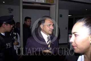 El gobernador de Campeche José Antonio González Curi llega ala reunión con el Secretario de Seguridad Pública el doctor Alejandro Gertz Manero. FOTO: David Bolaños/CUARTOSCURO.COM
