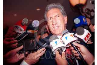Antonio González Curi, gobernador del estado de Campeche, hace declaraciones ante las acusaciones de que gobernadores priistas firmaron un desplegado en contra del gobierno foxista. FOTO: Victoria Valtierra/CUARTOSCURO.COM