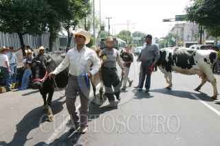 MÉXICO D.F. 07ABRIL2006.- Una agrupación de ganaderos acudieron a la SAGARPA, para continuar con la mesa de diálogo sobre el problema de la leche y amenazaron con sacrificar a dos animales sino se llega a un acuerdo. FOTO: Pedro Marrufo/CUARTOSCURO.COM