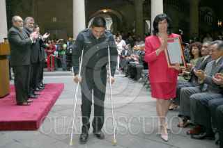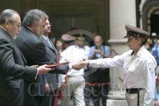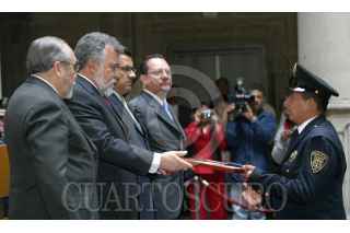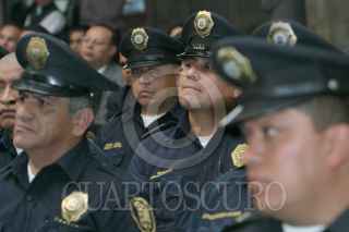 MEXICO, D.F. 10ABRIL2006.- Policias durante la ceremonia en el Antiguo Palacio del Ayuntamiento, donde les fueron entregados reconocimientos por su destacada labor. FOTO: Nelly Salas/CUARTOSCURO.COM