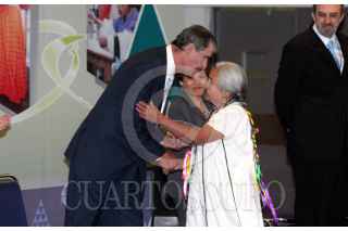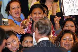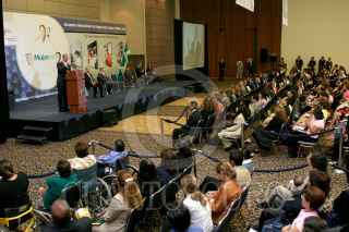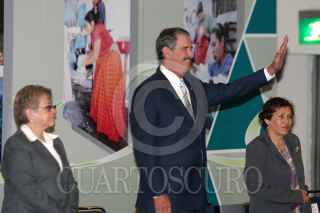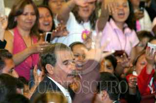 MEXICO, D.F., 24ABRIL2006.- Vicente Fox Quesada, presidente de la República, encabezó el encuentro internacional de mujeres empresarias sociales FONAES en el Centro Banamex. En la imagen un cartel con la frase "Fox, Muchas Gracias". FOTO: Moisés Pablo/CUARTOSCURO.COM