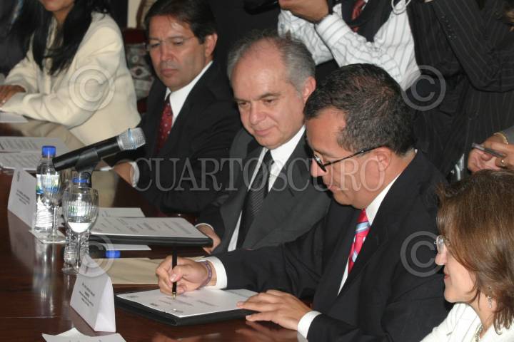 MÉXICO D.F. 25ABRIL2006.- El senador Enrique Jackson y Luis Carlos Ugalde, Consejero Presidente del IFE, durante la firma del Convenio General de Colaboración entre el H. Congreso General de los Estados Unidos Mexicanos y el Instituto Federal Electoral, en las instalaciones del Senado. FOTO: Diego Gallegos/CUARTOSCURO.COM