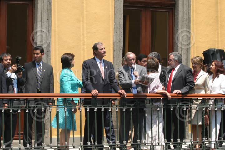 MEXICO, D.F., 25ABRIl2006.- Vicente Fox, presidente de la República, visitó la ueva sede del Instituto nacional de Antropología e Historia anteriormente Antiguo Palacio del Marques de Apartado, ubicado en la calle de Justo Sierra y Argentina. Lo acompañaron Sarí Bermúdez, Xochilt Galvez, directora general de la Comisión Nacional para el Desarrollo de los Pueblos Indigenas y Alejandro Encinas, Jefe de Gobierno. FOTO: Moisés Pablo/CUARTOSCURO.COM