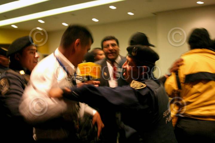 MEXICO, D.F., 25ABRIL2006.- Reporteros fueron agredidos por elementos de Seguridad Pública, al tratar de llegar al salón en donde se realiza el debate de los cuatro candidatos presidenciales. FOTO: Moisés Pablo/CUARTOSCURO.COM