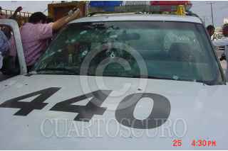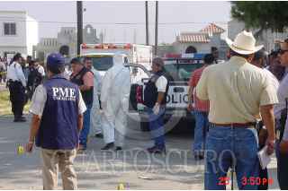 NUEVO,LAREDO.26ABRIL2006.- Jesús Cruz Lopez oficial preventivo fue abatido a balazos por desconocidos cuando custodiaba la casa de un jefe policiaco en la colonia del Issste en esta ciudad fronteriza y en los mismos actos violentos resultó gravemente herido el comandante Juan Flores Quiroga en hechos que son materia de investigación de las autoridades que hasta el momento continúan con las investigaciones. Foto: Rene Martìnez/CUARTOSCURO.COM