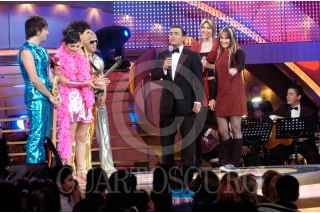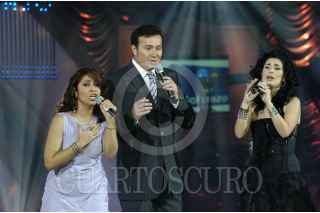 MÈXICO,D.F.08MAYO2006.- El grupo argentino "Miranda", Adal Ramones y las cantantes del grupo Ha_ Ash durante su presentaciòn en el programa "Cantando por un Sueño". FOTO: Televisa/CUARTOSCURO.COM