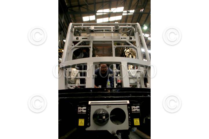 Cd. SAHAGUN, HIDALGO, 08MAYO2006.- Obreros arman todo el sistema electrico de un vagón que formara parte de un tren, en la compañia armadora de Bombardier. FOTO: Moisés Pablo/CUARTOSCURO.COM