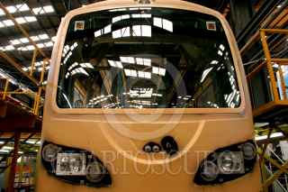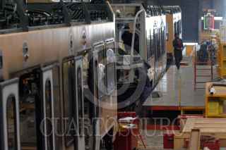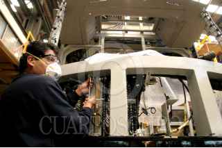 Cd. SAHAGUN, HIDALGO, 08MAYO2006.- Obreros arman todo el sistema electrico de un vagón que formara parte de un tren, en la compañia armadora de Bombardier. FOTO: Moisés Pablo/CUARTOSCURO.COM