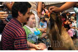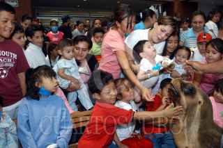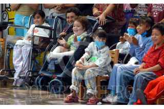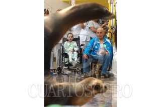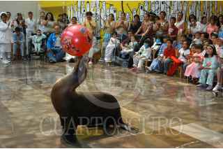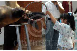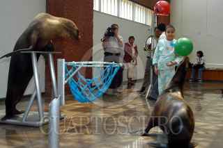 MEXICO D.F. 09MAYO2006.- Se presento un espectáculo de focas en la recepción del Hospital Infantil de México Federico Gómez para divertir a los pacientes internados. Como regalo final la foca paso a un lado de los pacientes para ser tocada. Esta actividad ayuda a una pronta recuperación de los pacientes. FOTO: Germán Romero/CUARTOSCURO.COM