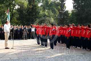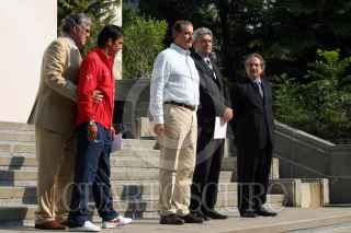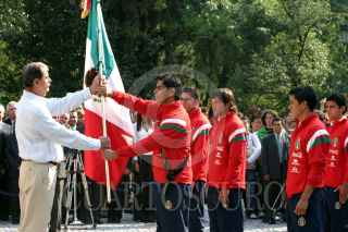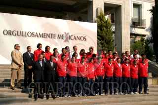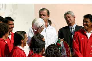 MEXICO, D.F., 09MAYO2006.- Vicente Fox Quesada, Presidente de la República saluda a Jesús "El Cabrito¨Arellano, jugador del Tricolor, durante el abanderamiento de la Selección Mexicana que participará en Mundial de Fútbol en Alemania, en la residencia oficial de los Pinos. FOTO: Moisés Pablo/CUARTOSCURO.COM