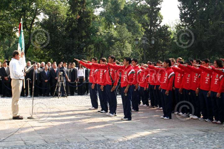 MEXICO, D.F., 09MAYO2006.- Vicente Fox Quesada, Presidente de la República saluda a Jesús "El Cabrito¨Arellano, jugador del Tricolor, durante el abanderamiento de la Selección Mexicana que participará en Mundial de Fútbol en Alemania, en la residencia oficial de los Pinos. FOTO: Moisés Pablo/CUARTOSCURO.COM