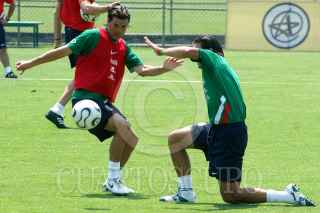 MÉXICO, D.F. 10MAYO2006.- Rafael "chiquis" García, disputa un balón con Francisco "kikín" Fonseca, durante el entrenamiento de la selección mexicana en el centro de alto rendimiento Pegasso. FOTO: Iván Stephens/CUARTOSCURO.COM