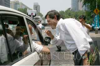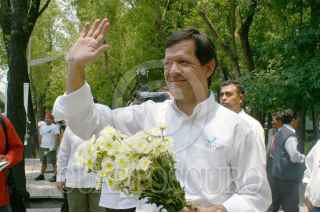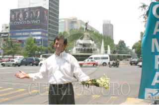 MÈXICO,D.F.10MAYO2006.- Roberto Campa, candidato a la Presidencia de la República por el Partido Nueva Alianza se presentò en la Av, Reforma en donde repartiò volantes y flores con motivo del "Dìa de las Madres". FOTO:M. Tulia Pèrez Bocanegra/CUARTOSCURO.COM
