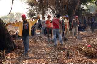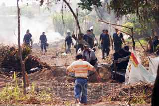 VILLAHERMOSA, TABASCO, 10MAYO2006.- Invasores que se habían aproviado de manera ilegal de un predio de 13 hectareas, tuvieron que sacar sus pertencias ante la presencia de 400 elementos de la SSP y PJE. FOTO: Marco Polo Guzmán/CUARTOSCURO.COM