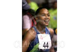 XALAPA,VERACRUZ 13MAYO2006.- La noche de ayer se llevó a cabo la galatletica de Veracruz donde en la prueba de 100 m planos para damas no hubo sorpresas pues la gamnadora de la competencia fue Marion Jones 11.06 seg FOTO: Carlos Tischler/CUARTOSCURO.COM