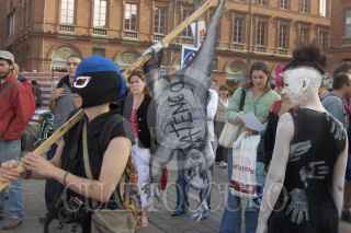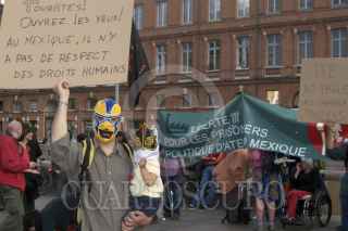 TOULOUSE, FRANCIA 19MAYO2006.- Diversos integrantes de diferentes Organizaciones Civiles, se manifestaron en favor de los presuntos presos políticos tras los hechos en San Salvador Atenco, los manifestantes realizaron actividades artisticas como medio de expresión. FOTO: CUARTOSCURO.COM
