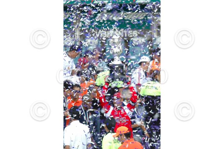 PACHUCA, HIDALGO 21MAYO2006.- Miguel Calero, portero de los Tuzos del Pachuca, sostiene la copa en alto luego de coronarse su equipo como campeón del torneo de clausura 2006. FOTO: Iván Stephens/CUARTOSCURO.COM