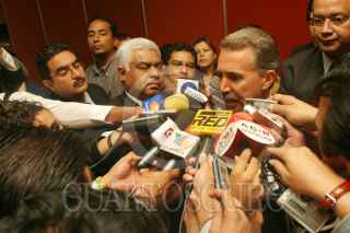 MÉXICO D.F. 22MAYO2006.- El candidato del PRI a la presidencia, Roberto Madrazo, se despidió de integrantes de aseguradoras, al termino de la reunión con la Asociación Mexicana de Instituciones de Seguros, A.C. (AMIS), en el Club de Industriales. FOTO: Diego Gallegos/CUARTOSCURO.COM
