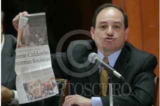 MEXICO, D.F. 22MAYO2006.- Mariano Palacios Alcocer, presidente nacional del PRI César Santiago Ramírez durante su reunión con los medios de comunicación. FOTO: Nelly Salas/CUARTOSCURO.COM