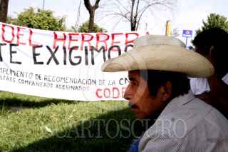 XALAPA, VERACRUZ 23MAYO2006.- Campesinos del sur del estado procedentes de Isla Mecayapan, Pajapan, Córdoba y demás, se manifestaron en la sede de la SAGARPA para exigirle al gobierno de Fidel Herrera, cumpla con las promesas de vivienda y apoyo al campo que prometió, así mismo los campesinos pertenecientes al Comité de Defensa Ciudadana CODECI se manifestaron en apoyo a la liberación de los detenidos en el caso Atenco, pues señalaron que la lucha del pueblo de Atenco es una lucha similar al suya por la defensa de la tierra y en contra de la represión. FOTO: Carlos Tischler/CUARTOSCURO.COM