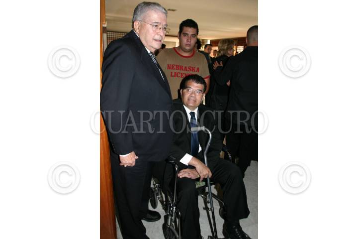MEXICO, D.f., 23MAYO2006.- El cronista deportivo Angel Fernandez, murió a los 80 años esta madrugada a causa de un paro respiratorio, sus restos son velados en una funeraria de Felix Cuevas. En la imagen Fernando Emilio Alonso y Emilio Fernando Alonso, acudieron a darle el pesame a los deudos. FOTO: Moisés Pablo/CUARTOSCURO.COM