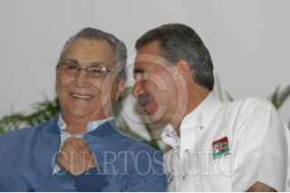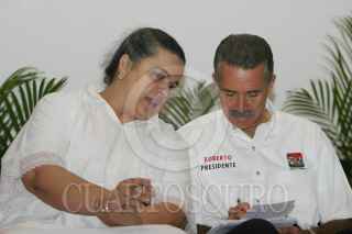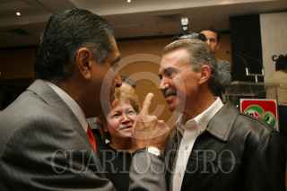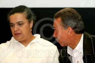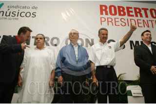 MÉXICO D.F. 27MAYO2006.- Beatriz Paredes, candidata priísta al gobierno del Distrito Federal,junto con Roberto Madrazo, candidato del PRI a la presidencia, durante el encuentro del aspirante presidencial con integrantes del Sindicato de Musicos SUTM, en las instalaciones del Grand Forum. FOTO: Diego Gallegos/CUARTOSCURO.COM