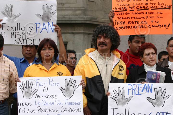 MEXICO, D.F., 05JUNIO2006.- Integrantes del PRD del Distrito Federal, protestaron afuera del Palacio Nacional en contra de la familia de la priemra dama Marta Sahagún y sus hijos y el candidato panista a la presidencia Felipe Calderón. En la imagen Luis Bravo "Tiviri", encargado de la secretaría de organizaciones sociales del PRD-DF. FOTO: Moisés Pablo/CUARTOSCURO.COM