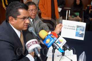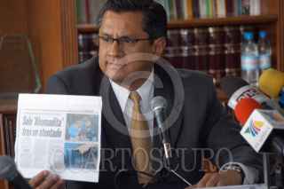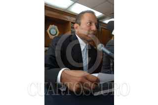 MEXICO, D.F., 06JUNIO2006.- Joel Ortega, Secretario de Seguridad Pública del DF, ofreció una conferencia de prensa sobre el atentado que sufrió la esposa de Carlos Ahumada, Cecilia Gurza, en la sede de la policía capitalina. FOTO: Guillermo Perea/CUARTOSCURO.COM