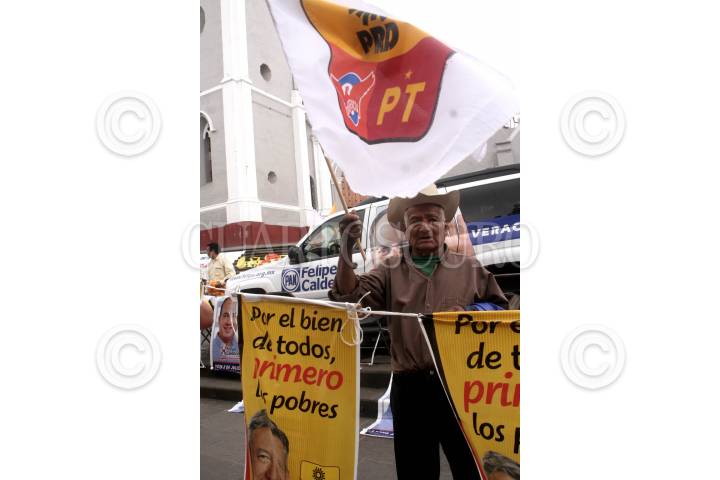 XALAPA, VERACRUZ 06JUNIO2006.- Seguidores de Felipe Calderón Hinojosa y de Andréz Manuel López Obrador se disputan la palaza lerdo de esta ciudad cada quien apoyandoa a su candidato para el debate de esta noche. FOTO: Carlos Tischler/CUARTOSCURO.COM