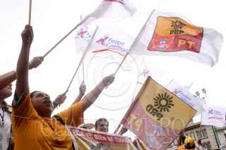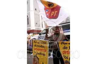 XALAPA, VERACRUZ 06JUNIO2006.- Seguidores de Felipe Calderón Hinojosa y de Andréz Manuel López Obrador se disputan la palaza lerdo de esta ciudad cada quien apoyandoa a su candidato para el debate de esta noche. FOTO: Carlos Tischler/CUARTOSCURO.COM