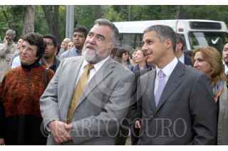 MÉXICO, D.F 07JUNIO2006.- Alejandro Encinas. Jefe de Gobierno, fue el encargado de inaugurar la exposición fotográfica "Magnum Futbol", en las rejas del bosque de chapultepec. La muestra, presenta imagenes en diferentes contextos del ambito del futbol a nivel mundial, captadas por fotografos de diversos paises, la obra es auspiciada por Fundación Televisa y la Agencia Magnum de Nueva York, en apoyo con la secretaría de cultura en la ciudad. FOTO: Pedro Kristian Lopez/CUARTOSCURO.COM
