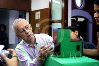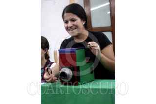 XALAPA, VERACRUZ 08JUNIO2006.- Una alumna realiza practicas con una cámara estenopeica durante el curso que impartio el fotografo Carlos Jurado. Foto: Carlos Tischler/CUARTOSCURO.COM