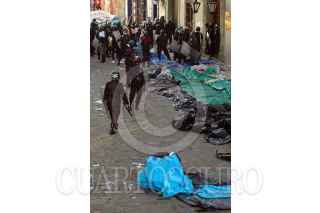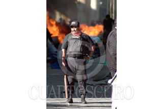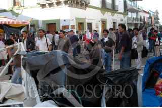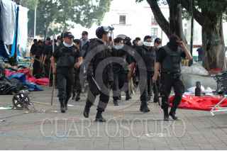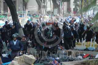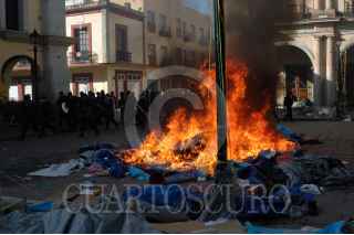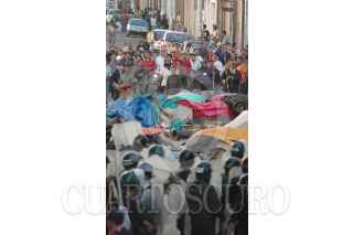 OAXACA, OAXACA 14JUNIO2006.- En las primeras horas del día inicio un operativo con policías preventivos y ministeriales para desalojar a un grupo de maestros que realizan un platón en el centro de la ciudad. Maestros de la Sección XXII del Sindicato Nacional de Trabajadores de la Educación retomaron el centro de Oaxaca tras el intento de desalojo. Los maestros se armaron con palos y piedras para defender su campamento. FOTO: Blanca Esthela Hernández/CUARTOSCURO.COM