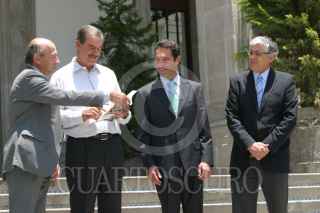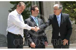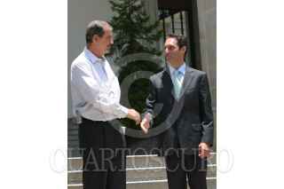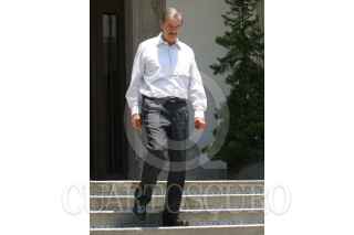 MEXICO, D.F. 14JUNIO2006.- El presidente Vicente Fox Quesada, baja las escalinatas de la residencia oficial de los Pinos para recibir Jo Ramírez, manager de la escuderia Maclaren. FOTO: Nelly Salas/CUARTOSCURO.COM