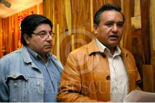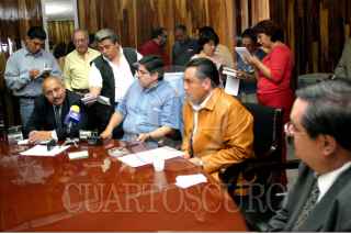 MÉXICO D.F. 15 JUNIO2006.- Alfredo Rivera, secretario consejero de administración del sindicato de Pascual, Fernando Amescua, secretario del Interior del SME, Martin Esparza Flores, secretario general del SME y Carlos Pavon, secretario de suntos politicos del sindiacto de Mineros , durante la conferencia de prensa donde dieron a conocer los acaciones a seguir después de los hechos ocurridos en Oaxaca. FOTO: Guillermo Perea/CUARTOSCURO.COM