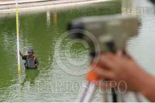MEXICO, D.F. 15JUNIO2006.- Continua el relleno del boquete que se formó en el lago de Chapultepec en la 2da. Sección del Bosque. FOTO: Guillermo Perea/CUARTOSCURO.COM