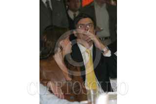 MEXICO, D.F. 21JUNIO2006.- Marcelo Ebrard Casaubom, candidato del PRD a la jefatura de gobierno de D.F. y Mariagna Pratt observan el partido de México contra Portugal. FOTO: Nelly Salas/CUARTOSCURO.COM