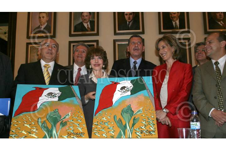 MEXICO, D.F. MEXICO, D.F. 21JUNIO2006.- Integrantes del comite Rescatemos México entregaron un reconocimiento a Heliodoro Díaz y Enrique Jackson por el apoyo bridado del senado a la organización de la marcha contra la delincuencia hace dos años. FOTO: Nelly Salas/CUARTOSCURO.COM