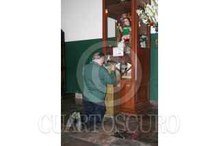 MÈXICO, D.F. 23JULIO2006.- En la Iglesia de San Gabriel Arcangel un grupo de personas le rinden culto al Santo Niño Milagroso ante el desempeño de la selecciòn mexicana en el mundial de futbol 2006. FOTO: Paola Hidalgo/CUARTOSCURO.COM