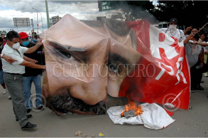 OAXACA, OAXACA, 23JUNIO2006.- Maestros del SNTE que permanencen en platón en el Zócalo desde hace varios días y cuya principal demanda es la destitución del gobernador Ulises Ruíz, acompañados por alumnos del nivel medio superior y simpatizantes bloqueron el cruce vehicular conocido como Cinco Señores. FOTO: Moisés Pablo/CUARTOSCURO.COM