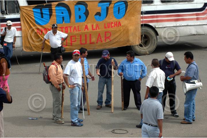 OAXACA, OAXACA, 23JUNIO2006.- Maestros del SNTE que permanencen en platón en el Zócalo desde hace varios días y cuya principal demanda es la destitución del gobernador Ulises Ruíz, acompañados por alumnos del nivel medio superior y simpatizantes bloqueron el cruce vehicular conocido como Cinco Señores. FOTO: Moisés Pablo/CUARTOSCURO.COM