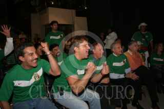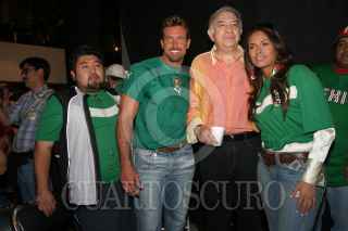 MEXICO D.F. 24JUNIO2006.- La producción y elenco de la telenovela ¨La verdad Oculta¨, se reunieron para observar por televisión el juego mundialista entre México y Argentina. Los actores Gabriel Soto y Galilea Montijo junto al productor Emilio Larosa. FOTO: Televisa/CUARTOSCURO